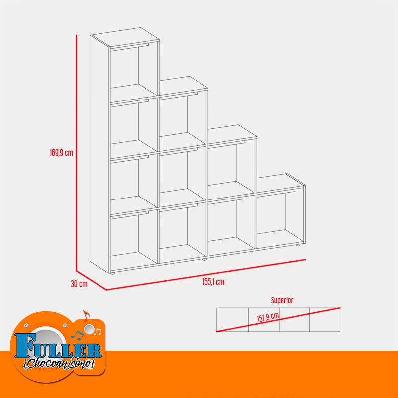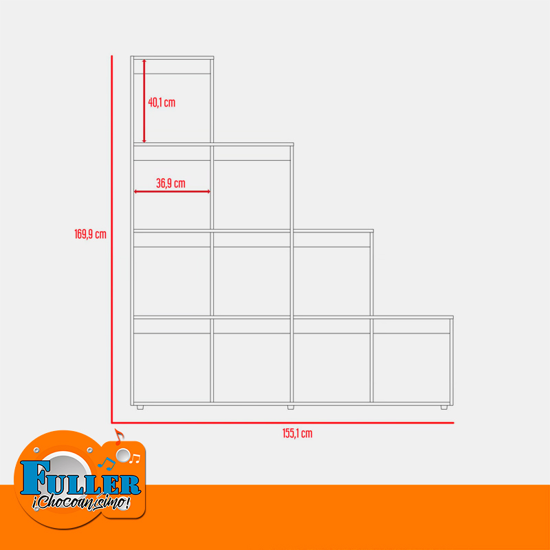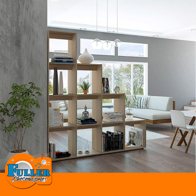 - Biblioteca Luma, un diseño moderno en escaleras, excelente capacidad de almacenamiento, espacio para libros y objetos decorativos, permite ubicarse como divisor de espacios.