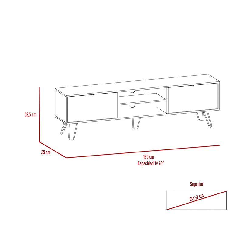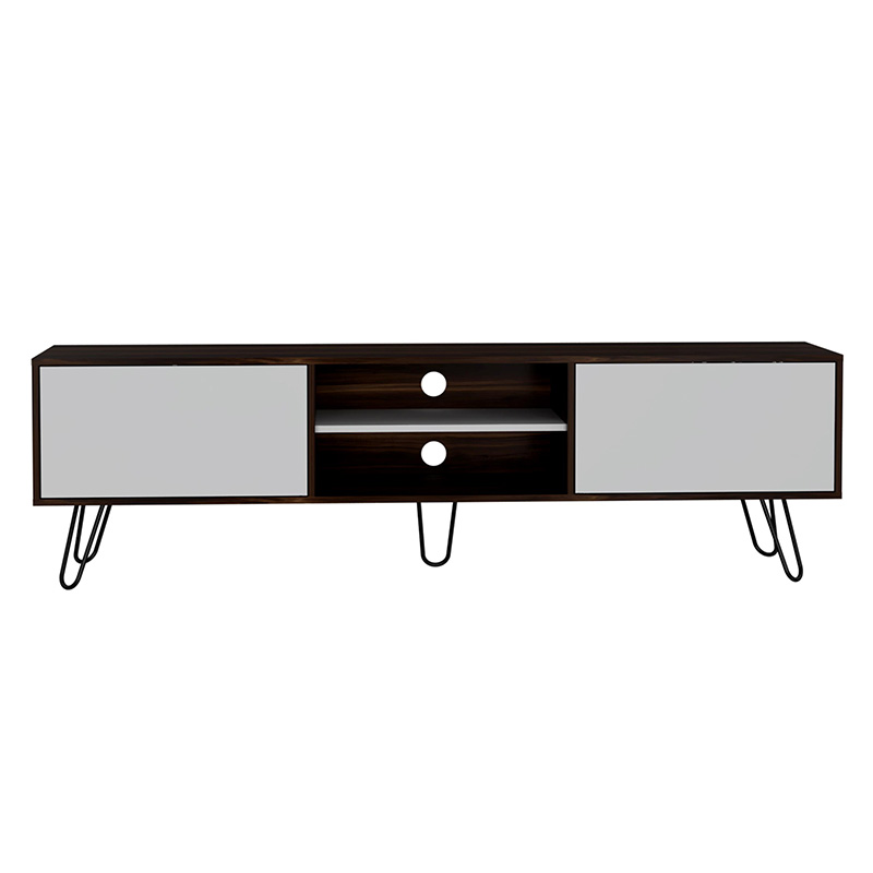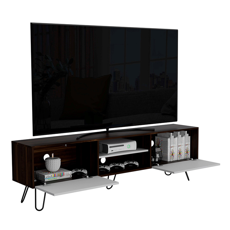 Rack para TV de 70” maximo, con dos puertas abatibles, apertura push, patas metalicas